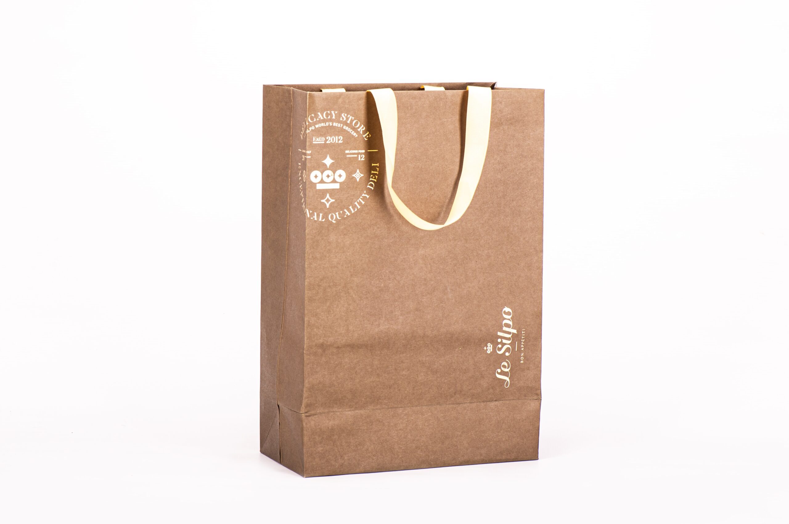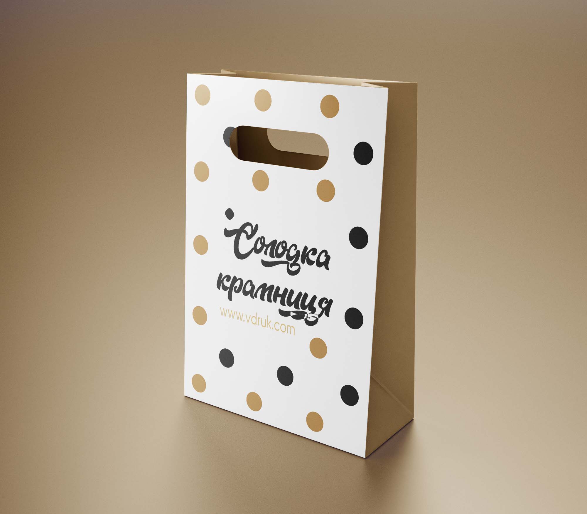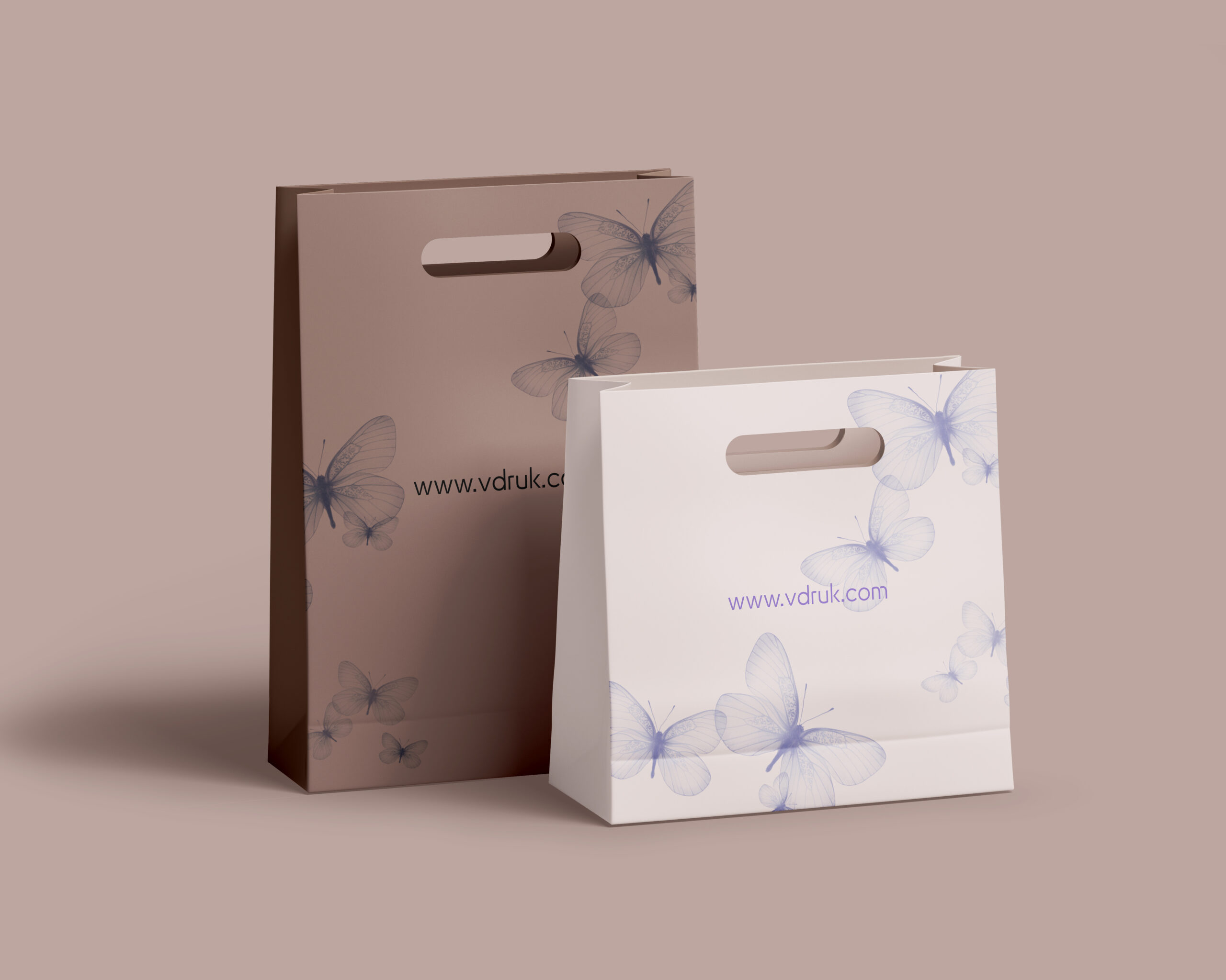 Особливість цих пакетів — ручки з атласної або репсової стрічки, які кріпляться приховано зсередини, що додає виробу елегантності та акуратності.