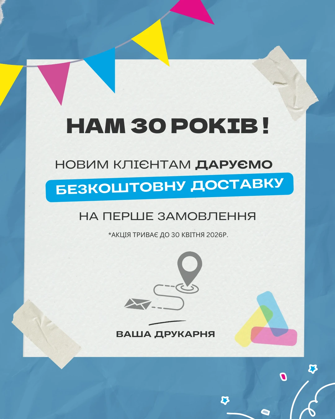 ✔ Матеріал: крейдований папір 170, 200 або 250 г/м²